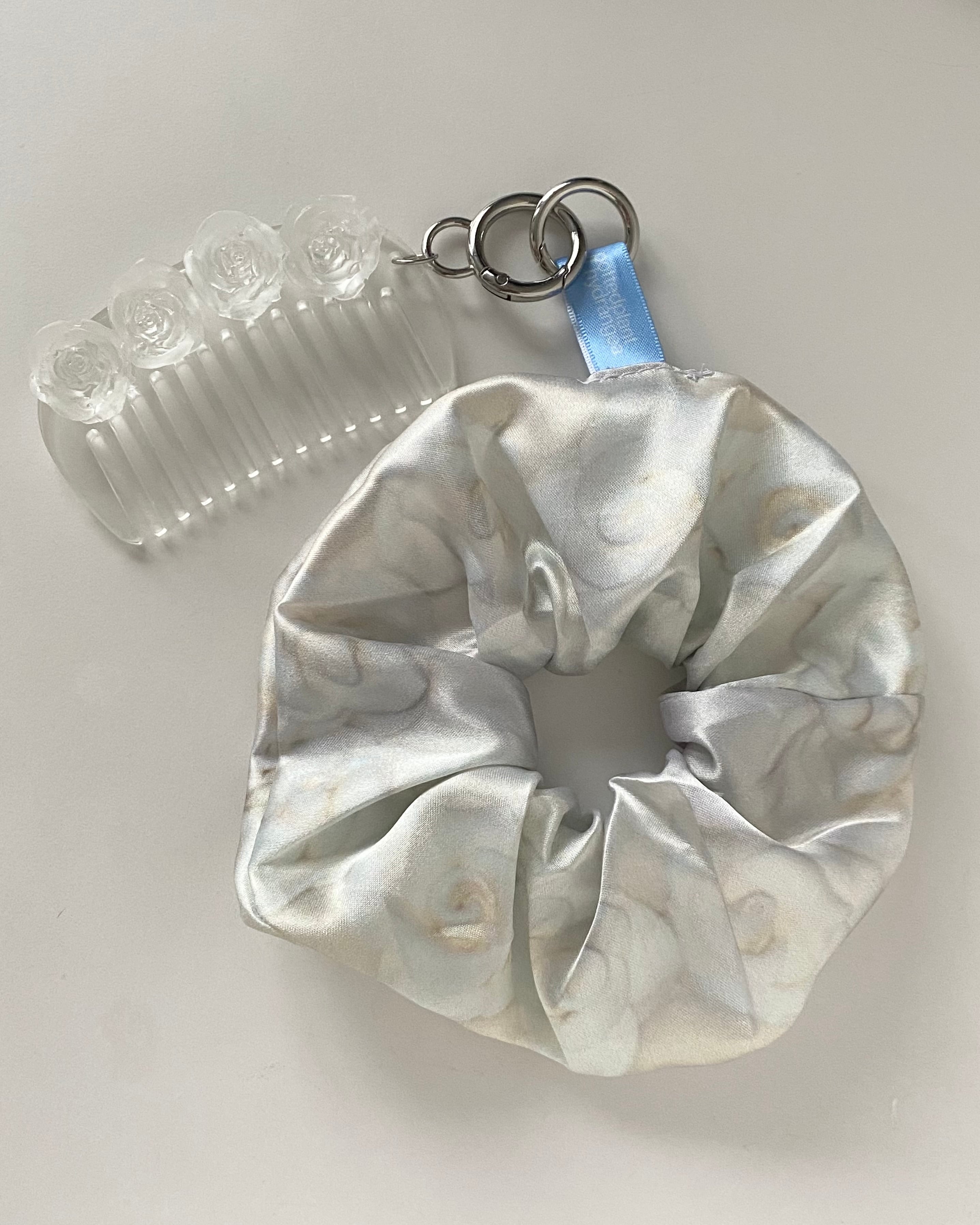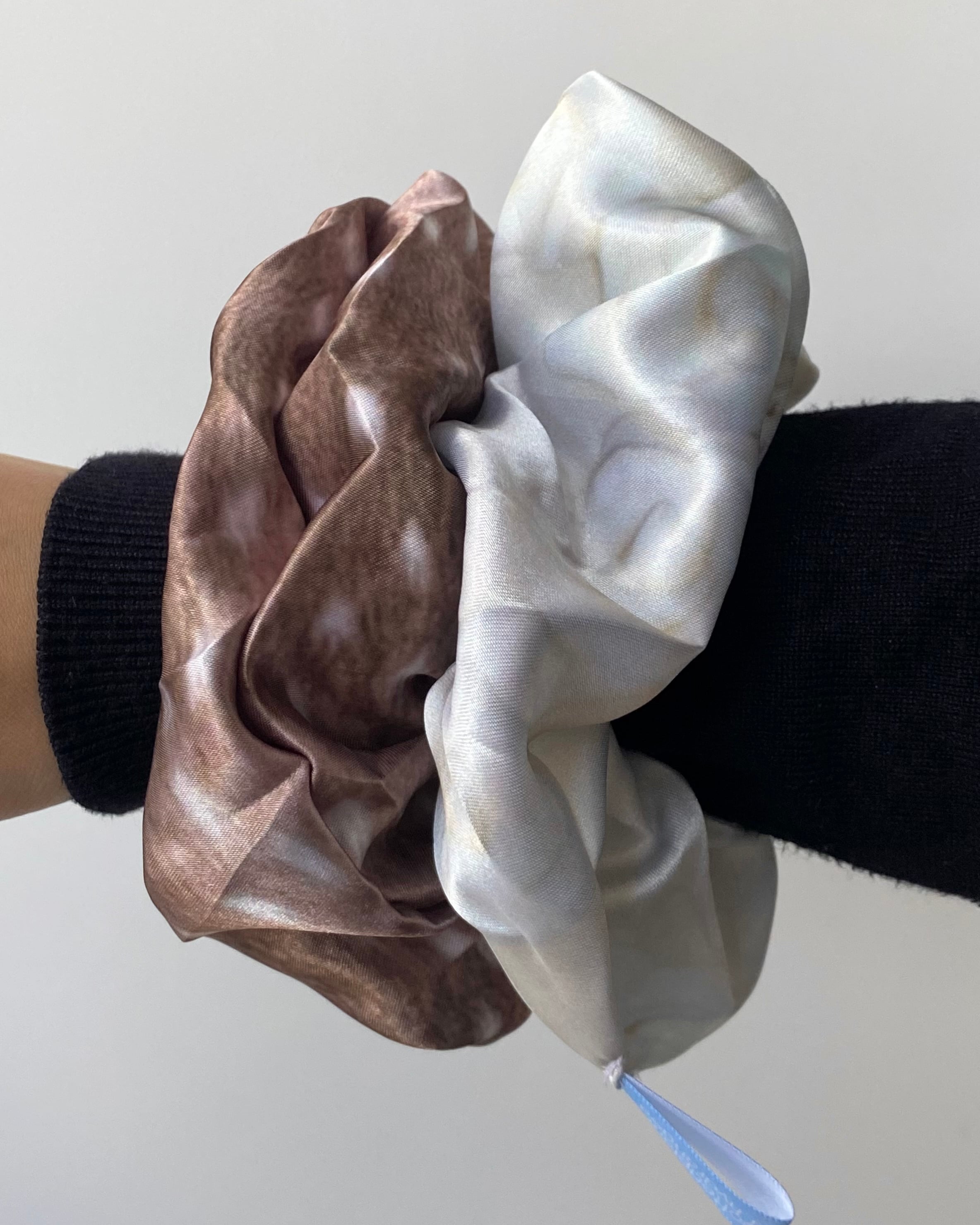 美しい光沢感のサテン生地をたっぷりと使ったシュシュです。
