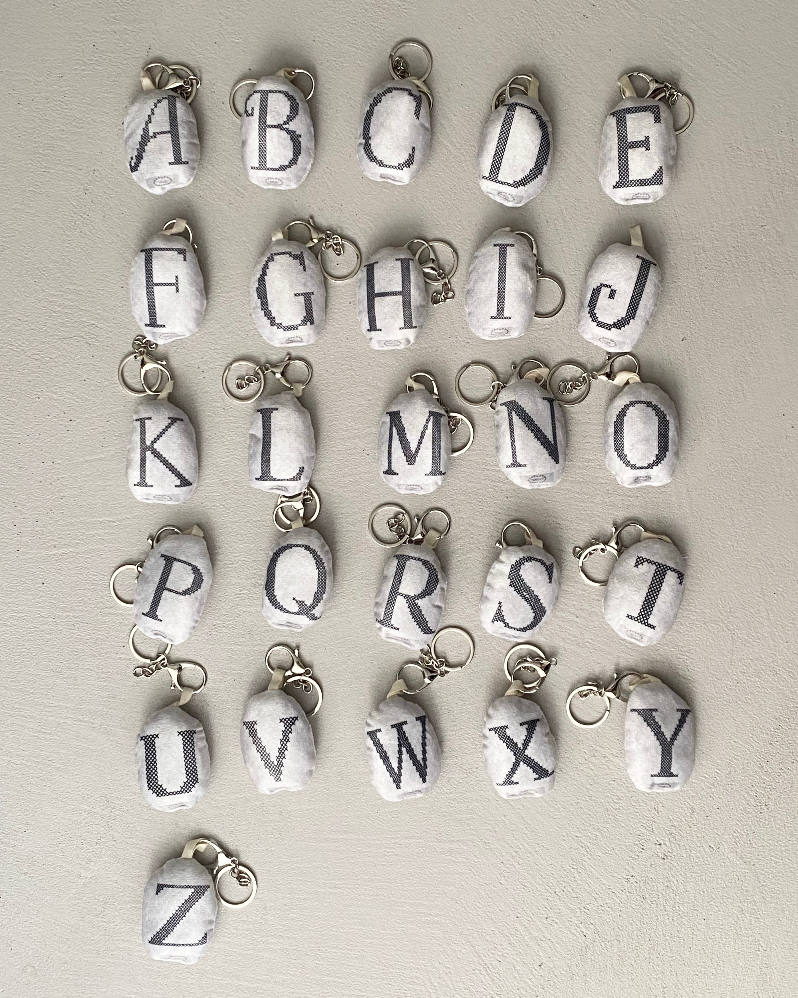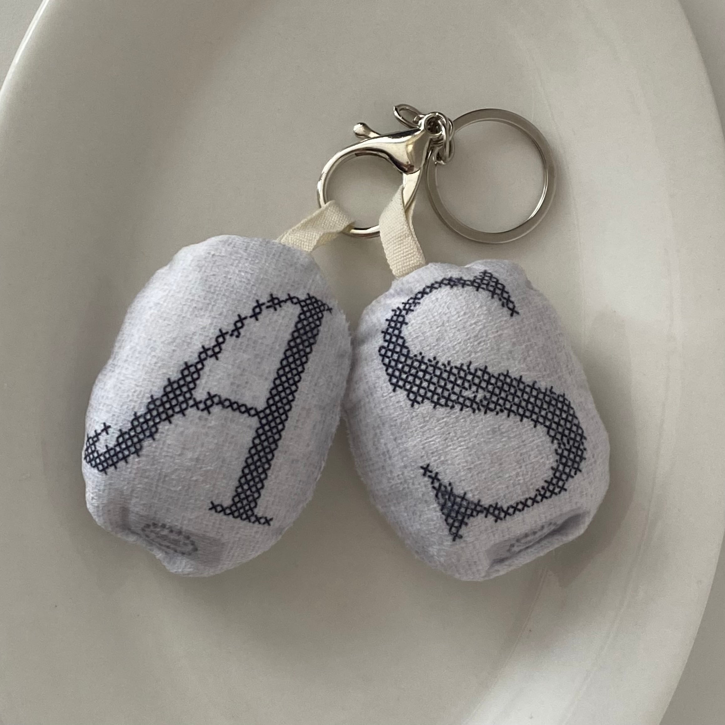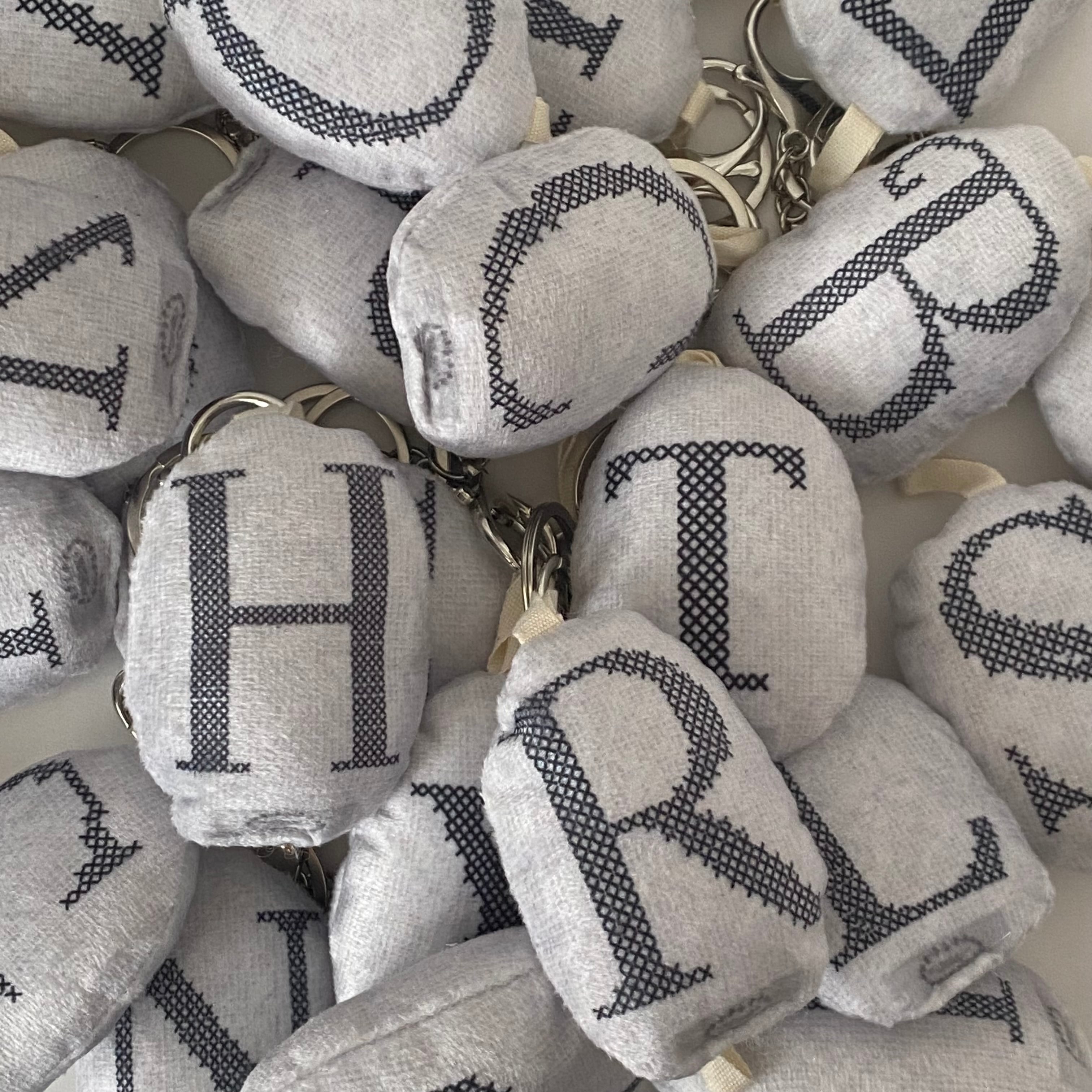やわらかなクッション素材で仕上げた、イニシャルチャーム。