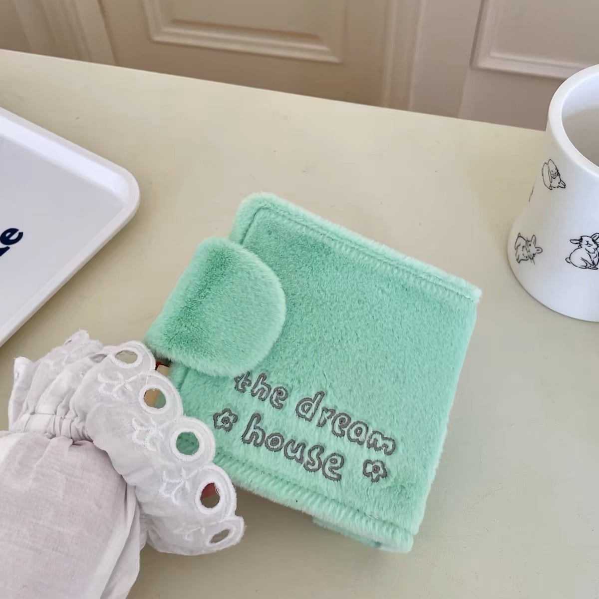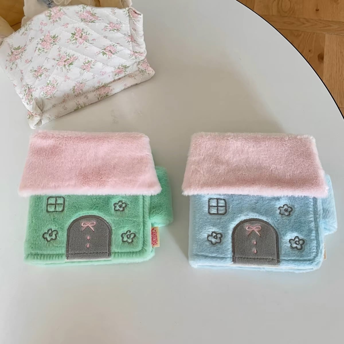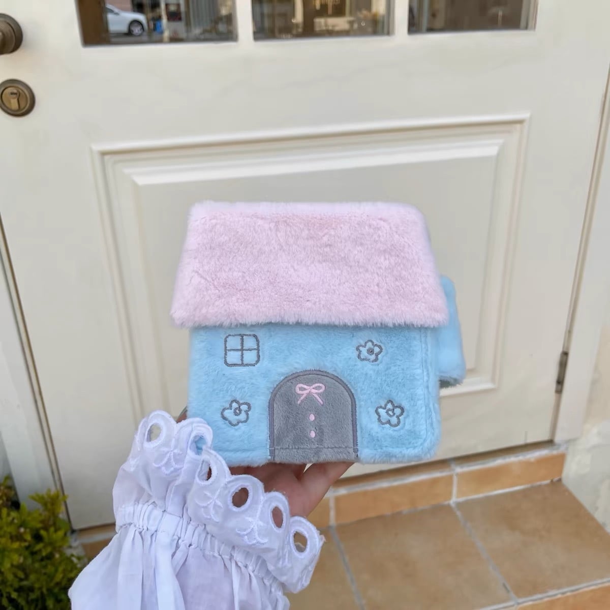 モフモフ生地のお家型カードケースです。