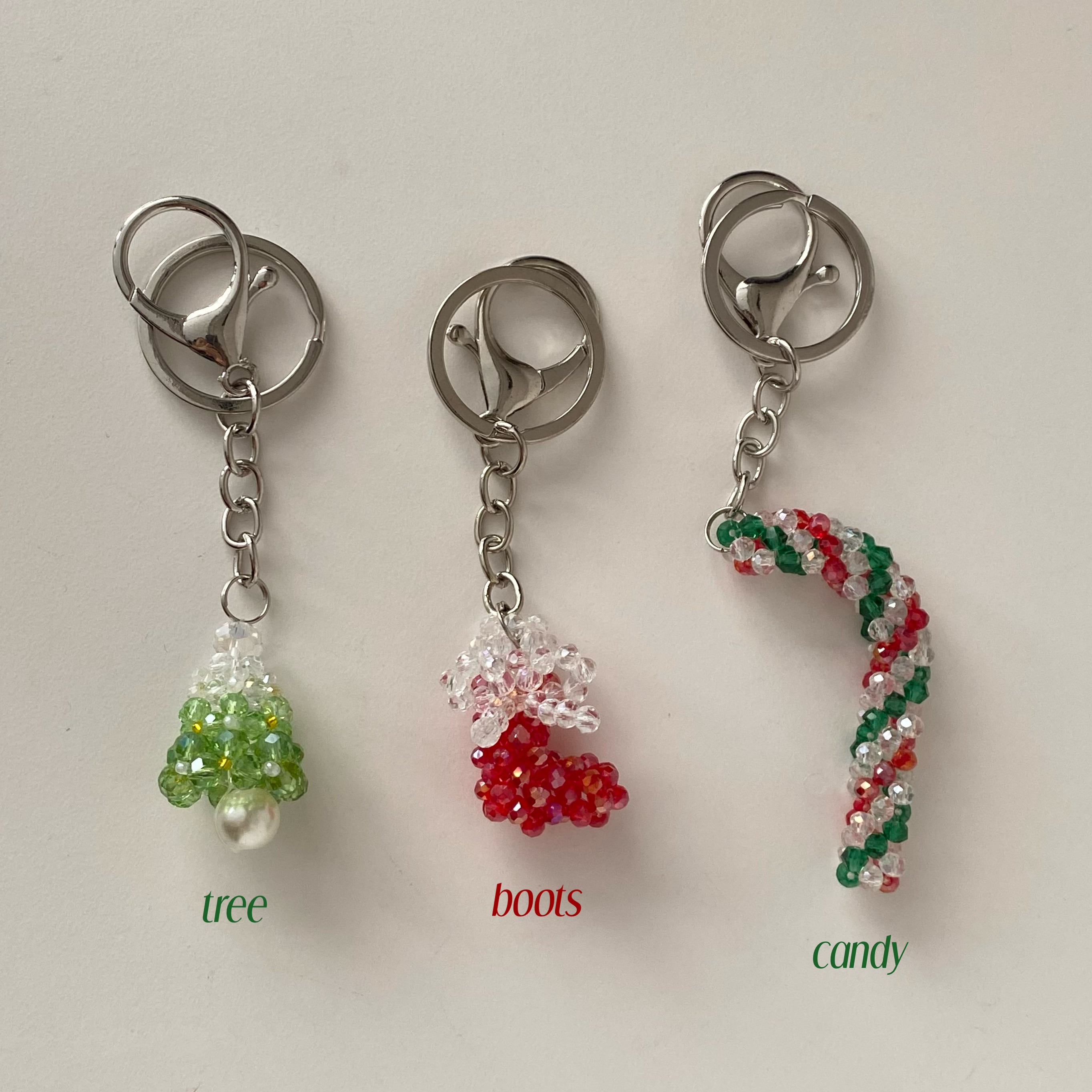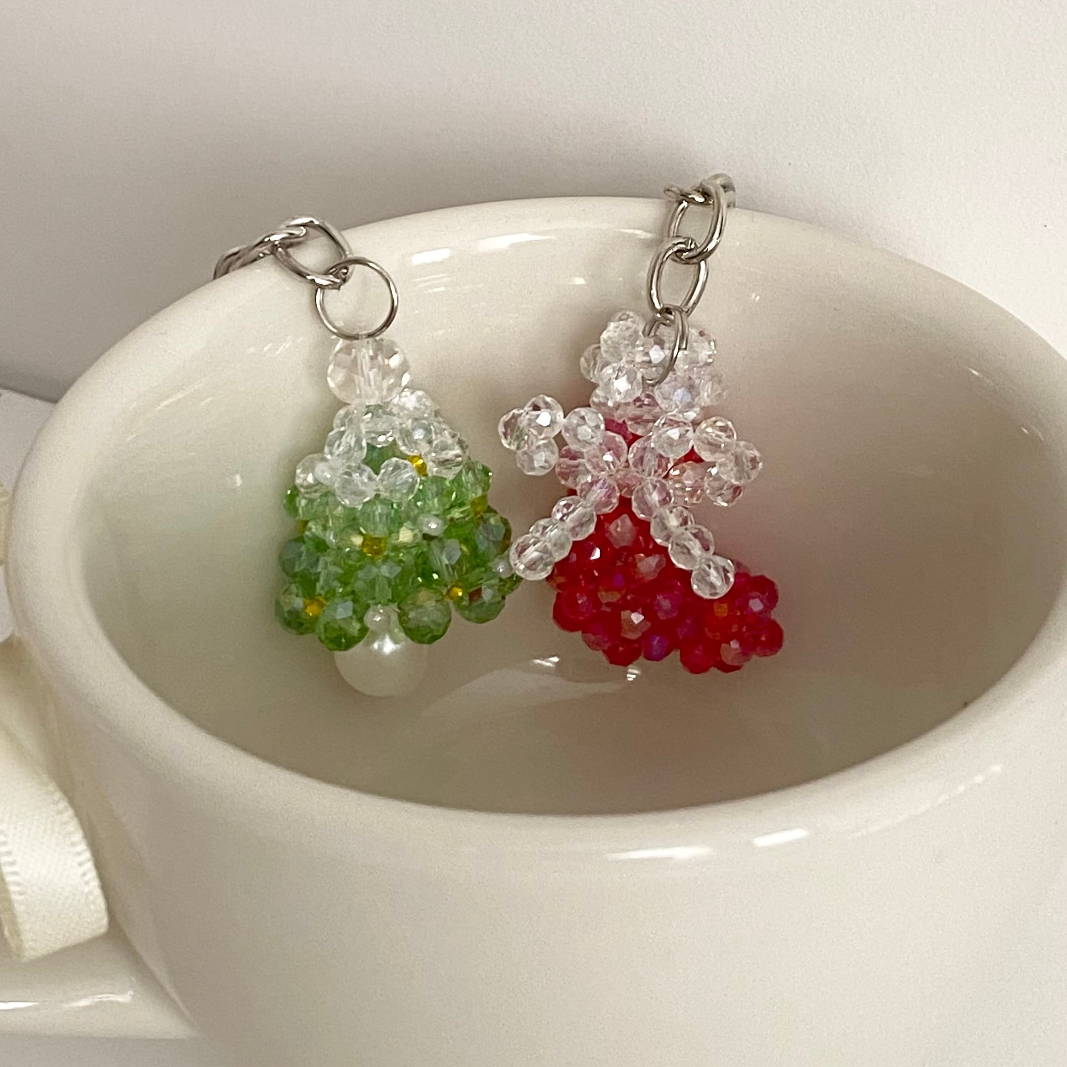 光に当たるとキラキラと輝くビーズチャーム。