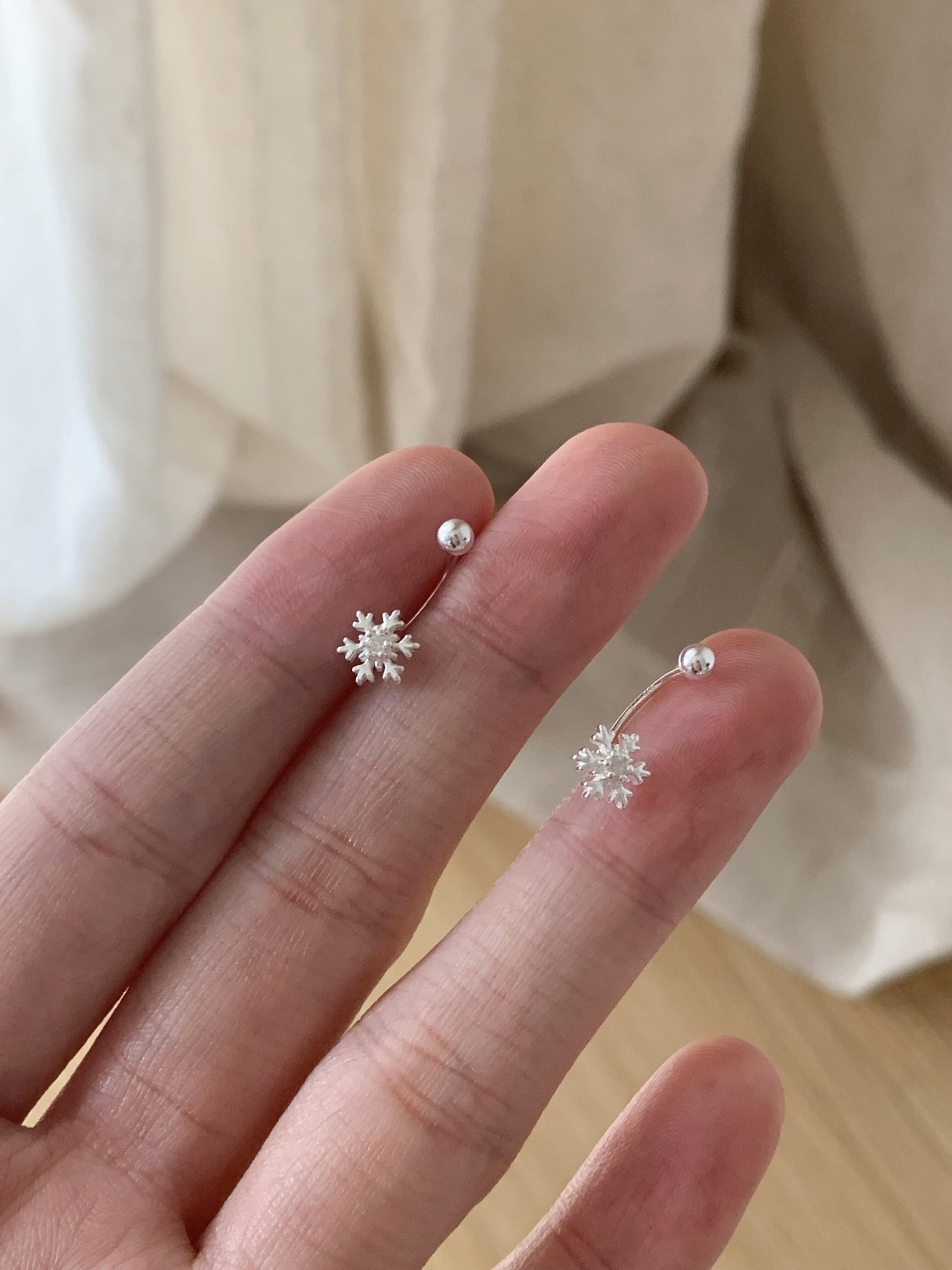 雪の結晶のピアスです。